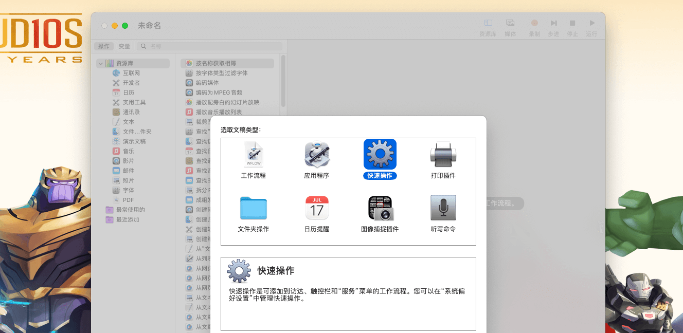 主要是借助 macOS 的「Apple Script」和「Automator」来实现。「Automator」的好处自是不用多说,可反复使用,而且结合快捷键,实际操作中方便快捷。首先打开「Automator」,选择新建一个「快速服务」: