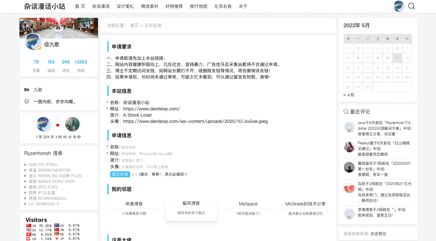 刚开始自己参照读书墙写了「实现友链页面个性化」,但后面2年多取消友链页,原因就是太麻烦:申请的人留言填一遍,自己后台再复制粘贴一遍。现在想实现自助友链申请,我只需要在后台通过就行。大千网络,前人摸索,虽然不能直接就用,好歹不用0~1重复造轮子。然后结合之前写的友链样式,完美解决。