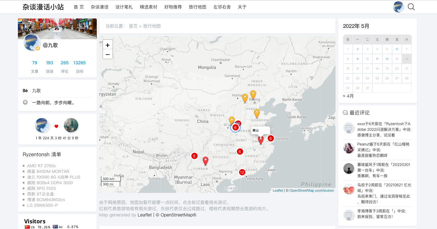 现在,依然对某些功能念念不忘,执拗的想要实现。比如网盘搭建、旅行地图、个性化的自助友链、日历热力图,以及前端发表说说。有些花点时间摸索摸索,已经实现,比如前面三个功能;有些是个残次品,像热力图;还有像前端发说说,就完全没有头绪。这篇日记算是把摸索实现的结果做个大致的记录。