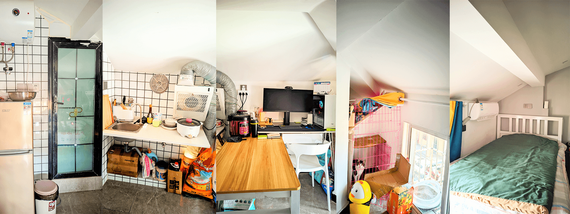 定好房子的时候,我就把小房间分成了五个区域:洗漱区、做饭区、吃饭和办公区、铃铛的窝及我的休息区。