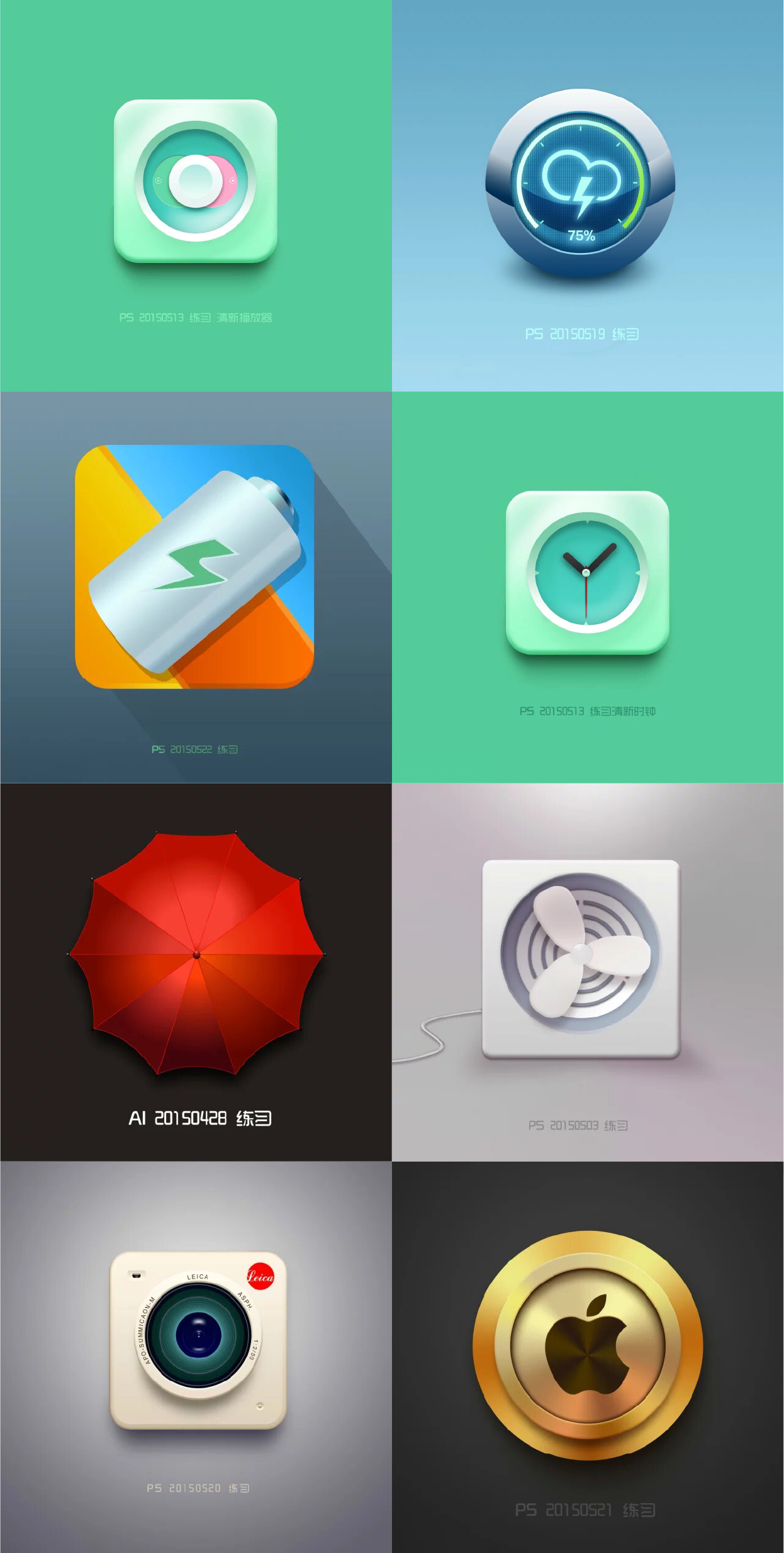 因为 Smartisan OS 和锤子的首席设计师——罗子雄,发现 icon 居然可以有如此细腻丰富的细节,爱了爱了。连续用 Photoshop 练习了两个月,上传些自己感觉还行的练习。虽然不知道这对工作有什么帮助,但谁知道呢?也许有一天,真就有用了对吧!