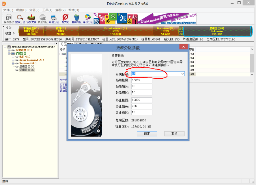 再次使用DiskGenius把安装盘(H)的系统标识改为AF;