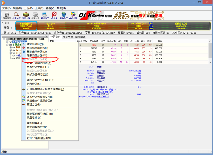 1、重启之后是进不了系统的,这时启动U盘就有用处了:插上U盘,重启,选择DiskGenius分区工具,选择你的Windows系统盘,右键选择激活当前分区,然后保存重启系统;