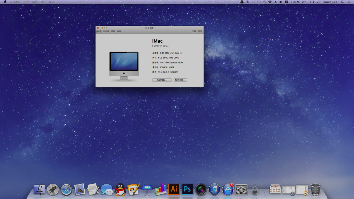 到目前为止,我已经持续用了近一个月Mac OS,没有出现大的问题,Photoshop、illustrator、Aperture等都能正常使用,iMessage和FaceTime也能正常使用!在这里感谢远景的大神,他们提供了懒人版、以及一些驱动(虽然很多也用不上,可是能提供解决方案和思路)!我会在相应的地方@ 他们,有疏忽漏了没有提到的还请见谅!
