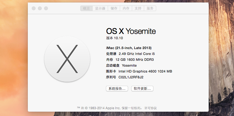 就我自己使用而言,没有闪屏和花屏,轻微冻屏,系统显示显存1024M。没有水波纹,打开launchpad会有轻微卡顿闪屏,说明显卡是驱动失败的,键盘必须使用外接,其他一切正常。可能你按照我提供的工具和流程安装,进入系统后和我的并不完全一样。由于没有任何“变色龙+MBR+10.10”可借鉴的安装例子,哪怕是失败的也没有找到,这可能是我能做的比较完美的了。如果想体验像10.9那样的完美,就耐心等待苹果官方添加HD4600移动版的支持吧~
